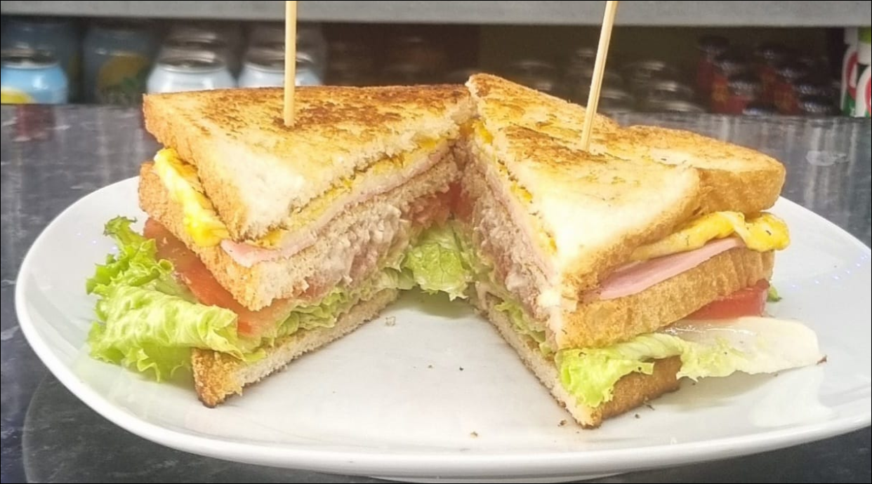 Pan de molde, lechuga, tomate, York, queso, tortilla o huevo, atún
