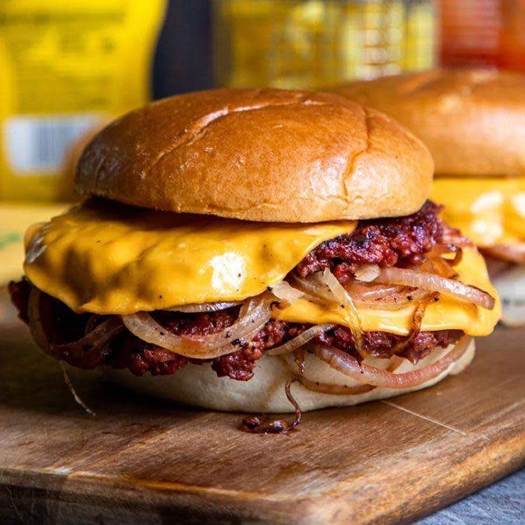 Doble smash Patty de 70 g. cada una de vaca vieja madurada con cebolla estilo Oklahoma, queso americano, kétchup, mostaza