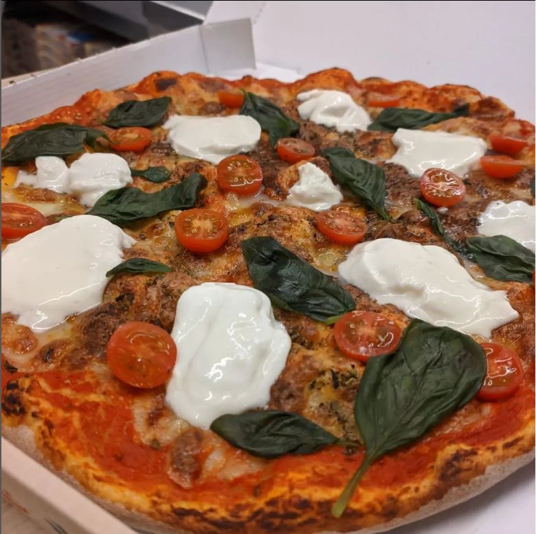 Tomate, mozzarella, bacon, carne picada y salsa barbacoa