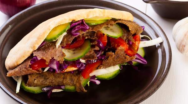 Lechuga, cebolla, tomate, salsas y carne (pollo, carne de ternera o mixto)