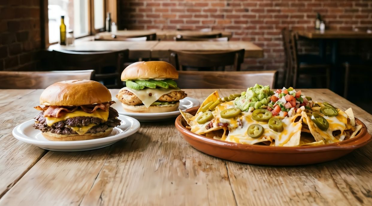 Carne de ternera cocinada durante 5 horas, queso cheddar, queso gorgonzola, cebolla encurtida y guacamole