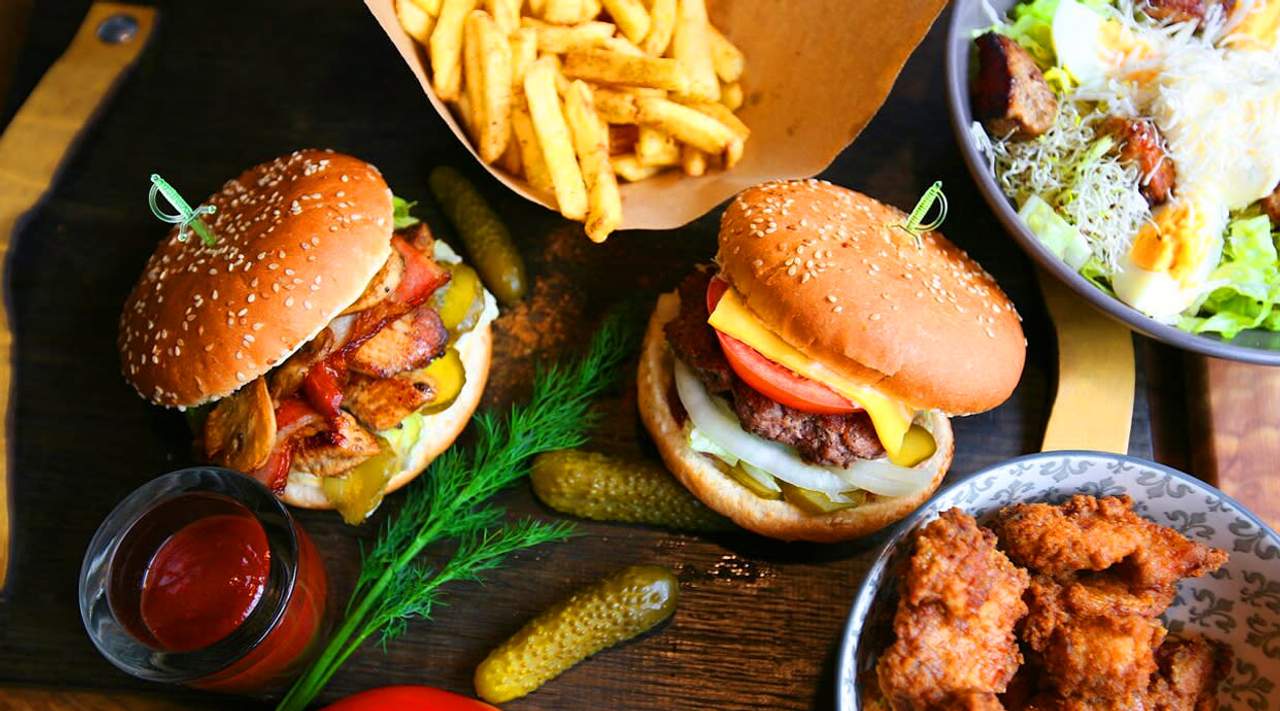 Tomate, carne de entrecot, jamón y York, queso, bacón, huevo y lomo adobado