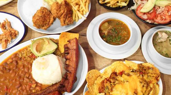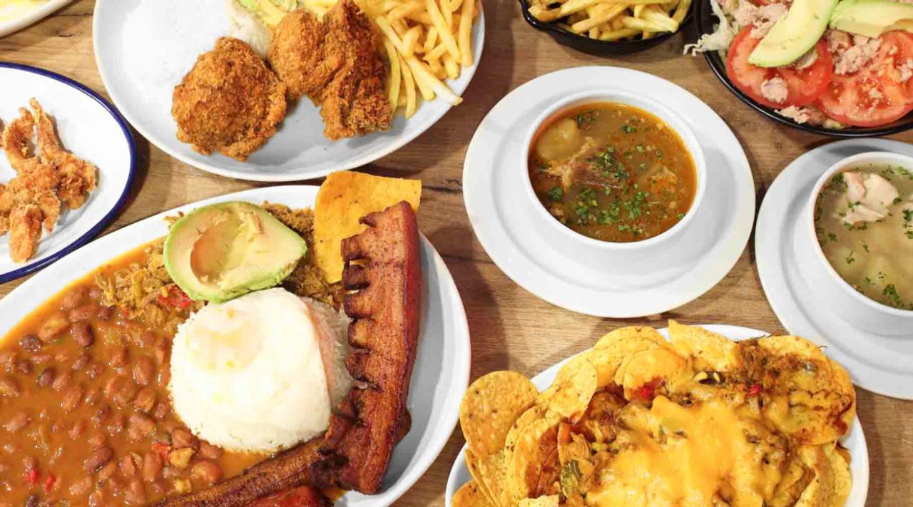 La más colombiana de todas.. Arroz, frijol, plátano maduro frito, chorizo, huevo, arepa, chicharrón, carne desmechada, aguacate y bebida