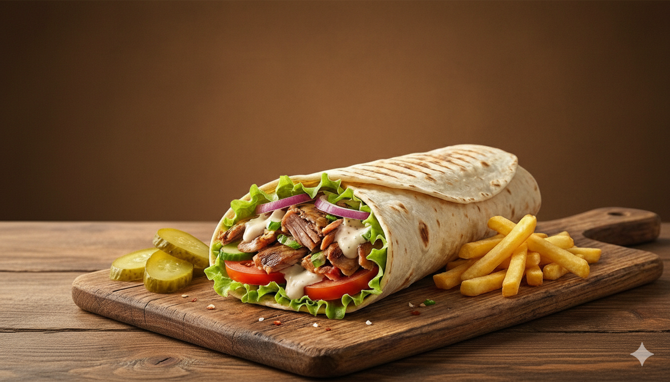 ლავაში,ქათმის ხორცი, პომიდორი, წიწაკა, მაიონეზი, კეტჩუპი, ხახვი