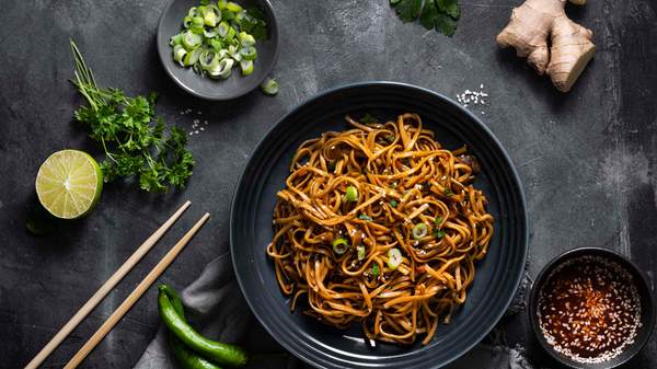 საქონლის ხორცი, უდონი, ბულგარული წიწაკა, სტაფილო,სოკო შიტაკი, ბროკოლი