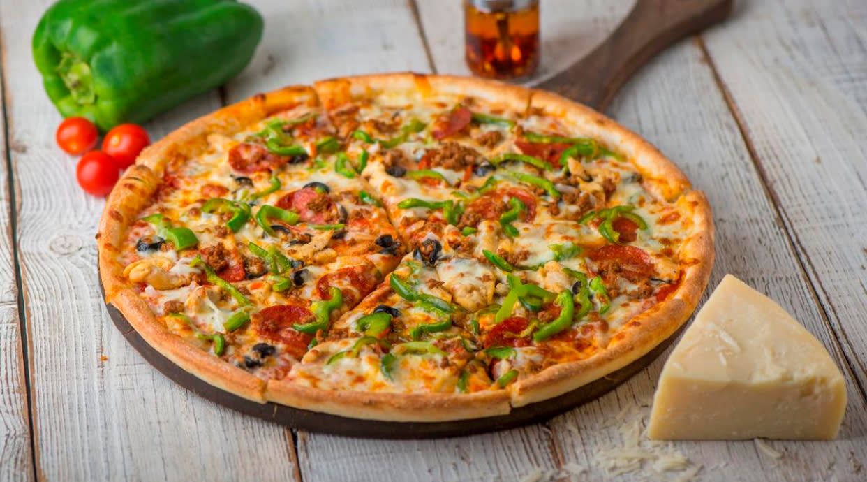 პიცის ცომი, ყველი მოცარელა, სოკო, ტომატის სოუსი, ბროკოლი, ბულგარული წიწაკა, ბადრიჯანი, ორეგანო, ზეითუნი, მარილი,
