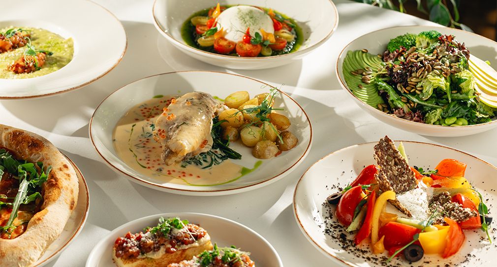 წითელი და ყვითელი ბულგარული,პომიდორი, კიტრი, ზეთისხილი შავი, დამარინადებული წიწაკები, ნახევრად გამომშრალი პომიდორი, წითელი ხახვის მარინადი.