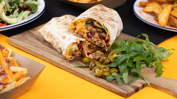 ტორტილა, ქათმის ხორცი, ბულგარული წიწაკა, სოიო, ნაღები, წითელი წიწაკა, პაპრიკა, კეტჩუპი, არაჟანი, ჰალაპენიო