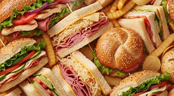 სენდვიჩის პური, ძეხვი სალიამი, ყველი, პომიდორი, ყველა ჩედარი, სოუსი