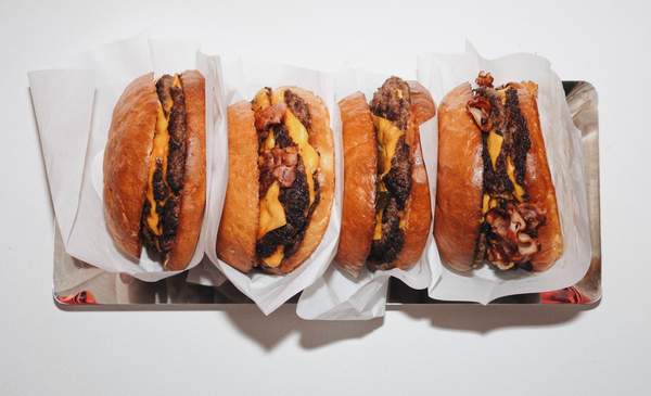 სამმაგი ხორცი, ჩედარი, მწარე სოუსი, ბეკონი