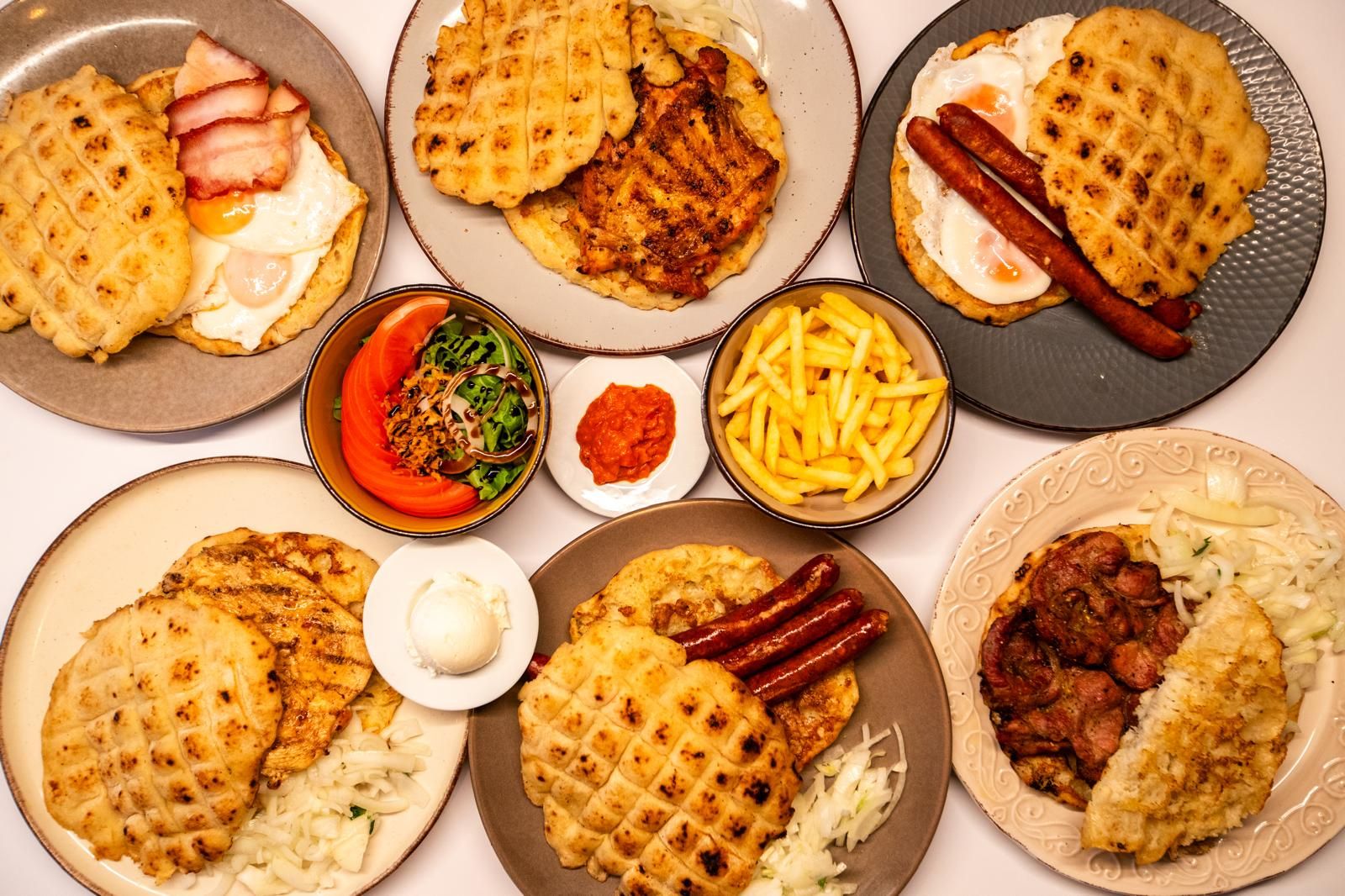 Ćevapi, roštilj kobasica, svinjski vrat, pileći batak zabatak, punjena pljeskavica, zagrebački odrezak, somun, luk, pomes, ajvar, kajmak