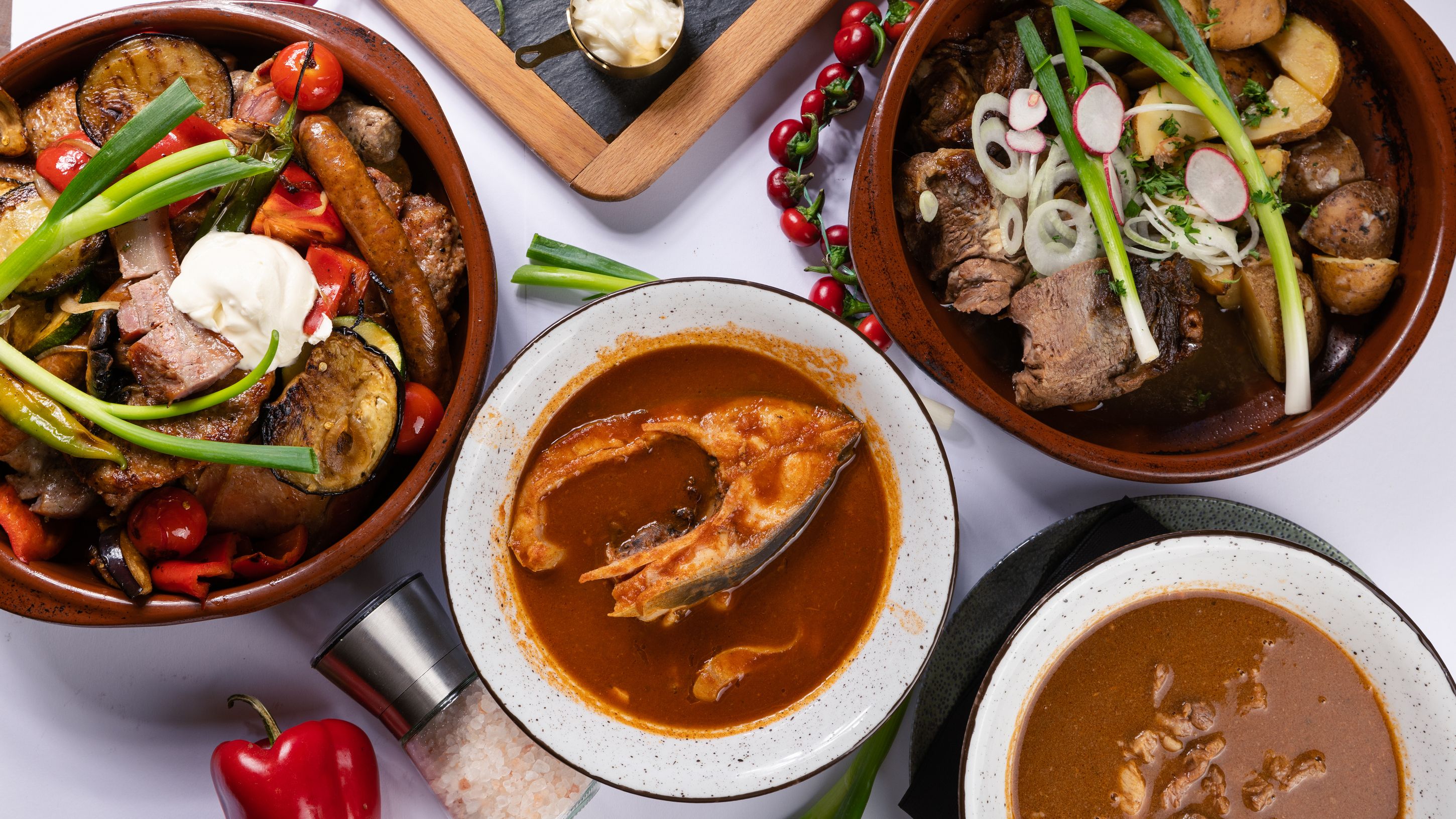 Ćevapi, grill piletina, pljeskavica, pileći ražnjić,dimljeno meso, domaća slanina, uštipak, roštilj kobasica, vratina, svježi luk, zapečeni grah, grill povrće, domaći krumpir, urnebes, mayo luk umak