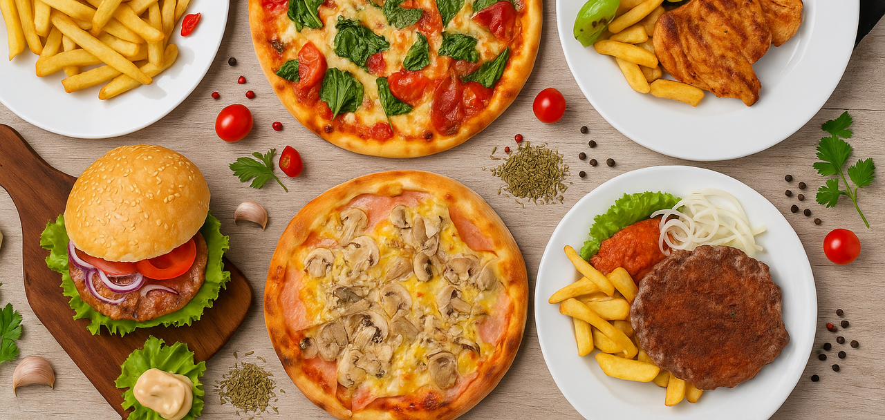 Pecivo, pljeskavica, ketchup, majoneza, senf, ajvar, zelena salata, sir
