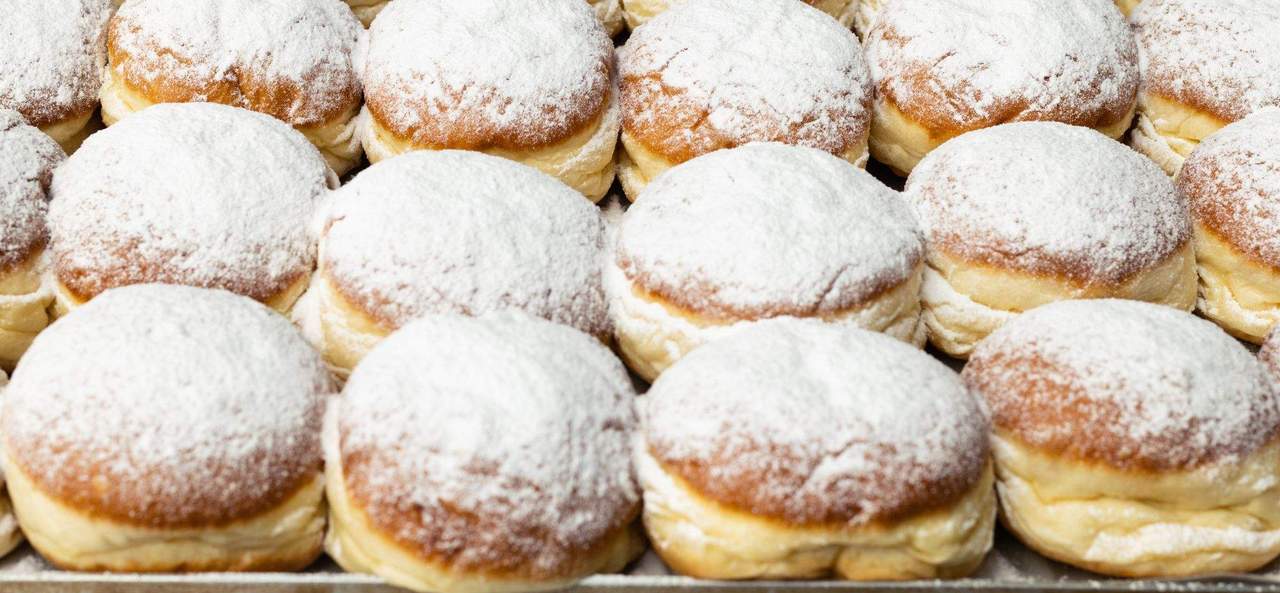 Krafna punjena marmeladom, posuta šećerom u prahu