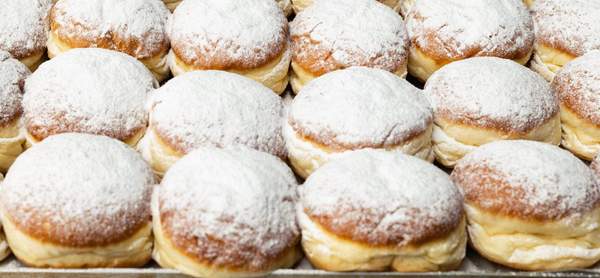 Krafna punjena kremom od vanilije, posuta šećerom u prahu