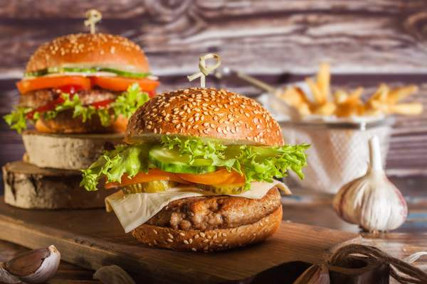 Briosche pecivo, 2x juneća pljeskavica 120gr, slanina, sir Gauda, prilozi po želji
