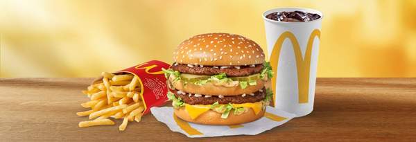 Burger s dva kosana 100% goveđa odreska u finom pecivu posutom sezamom, cheddar sirom, kiselim krastavcima, sitno sjeckanim lukom i jedinstvenim Big Mac umakom. U meniju s velim krumpirićima i pićem 0.5 l po izboru