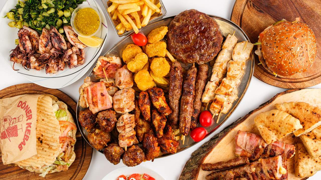 Mala pljeskavica, 2 x ćevapa sa sirom, 1 x piletina, 1 x svinjski ražnjić, 1 x kobasica, pomfrit, lepinja