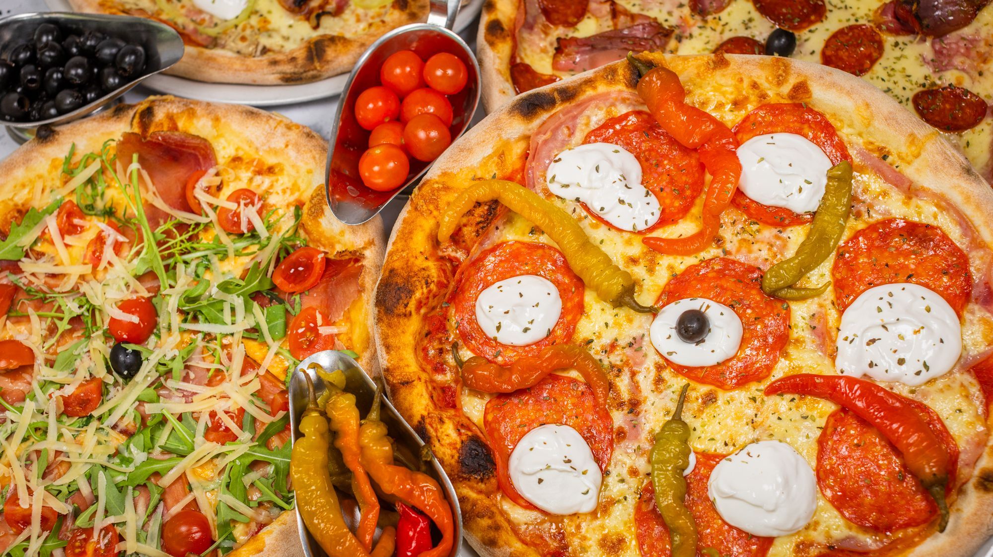 Rajčica, sir, šunka, kobasica, ljuti feferoni