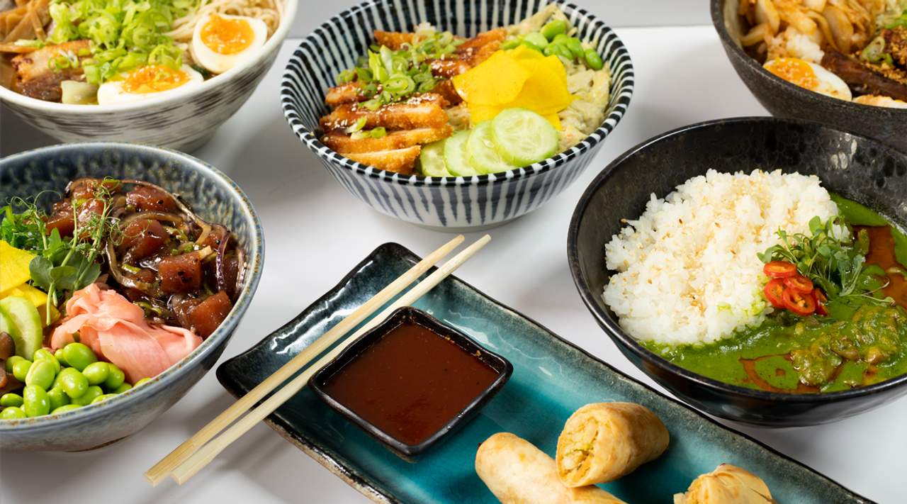 Zapečeno carsko meso, korejski BBQ umak, kikiriki crumble s čvarcima i prženim lješnjacima, mladi luk, coleslaw, kimchi, ramen jaje, sushi riža, sezam