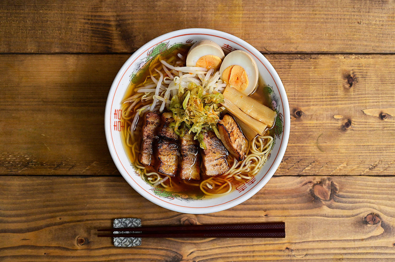 Ragù di manzo, uovo, bambu marinato, spinaci, germogli di soia, naruto, cipollotto, peperoncini essiccati, sesamo