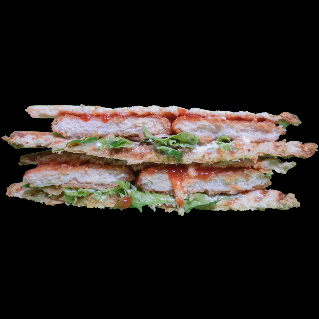 2 Cotolette di pollo, halal, maionese, ketchup, cipolla croccante, lattuga