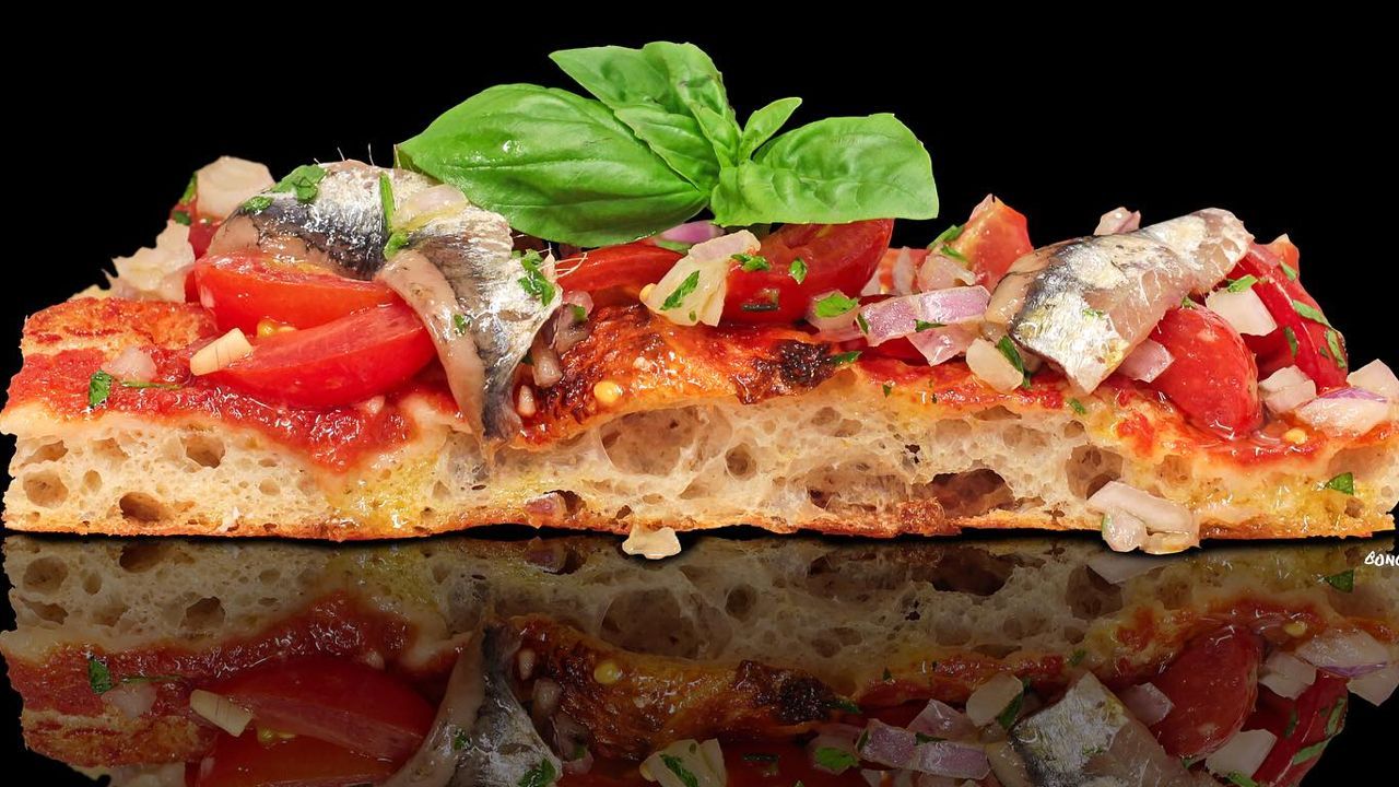 Salsiccia di bra (100g), cime di rapa, pomodoro, cipolle caramellate, provola affumicata e salsa yogurt