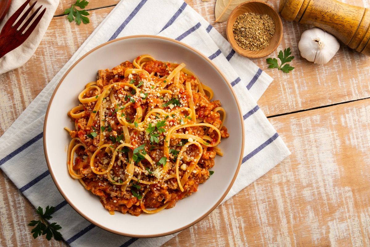 Lasagna alla bolognese, salsa, carne macinata, prosciutto cotto, mozzarella e parmigiano