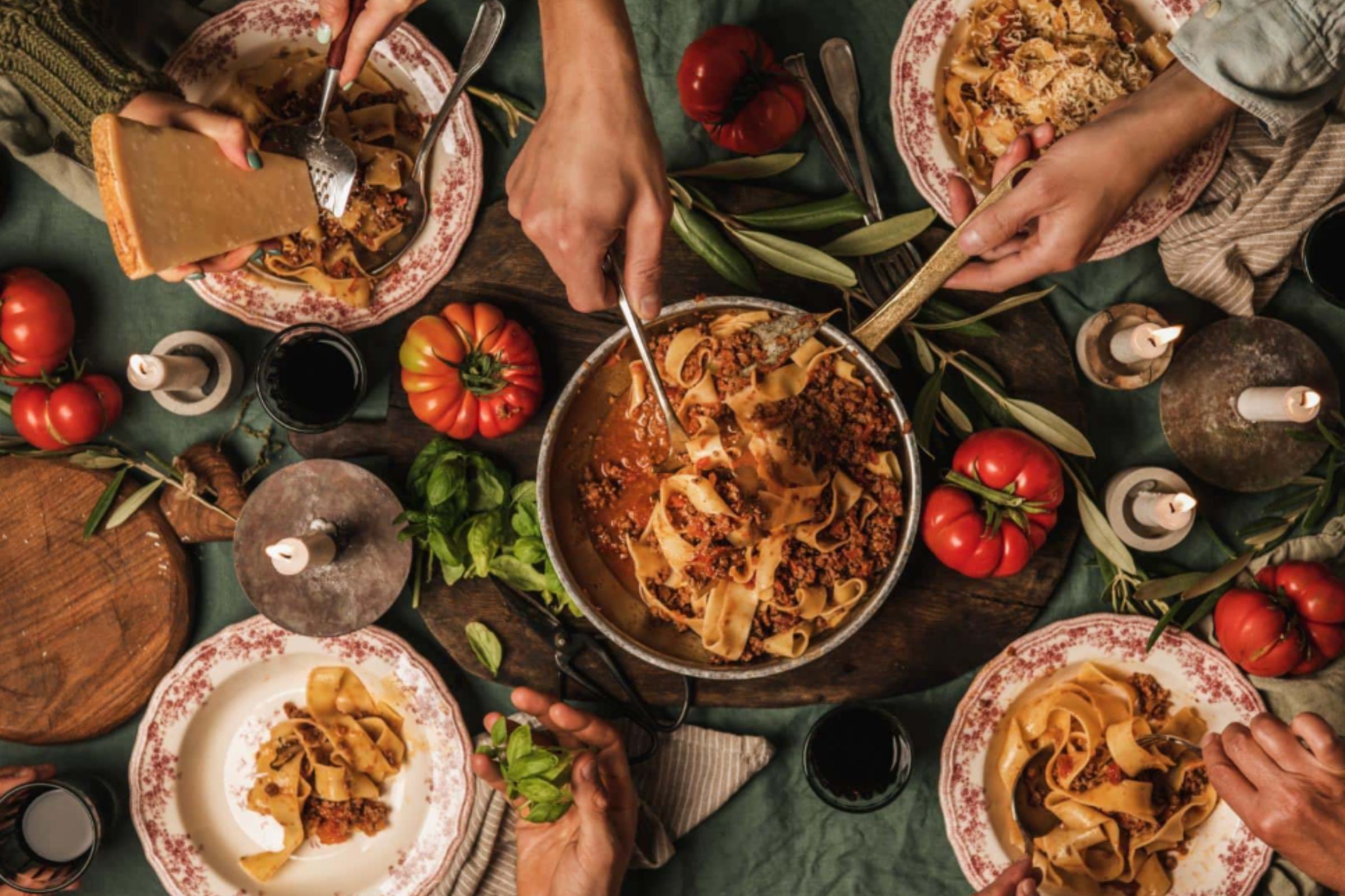 Tagliatelle condite con ragù bolognese con carne di manzo
