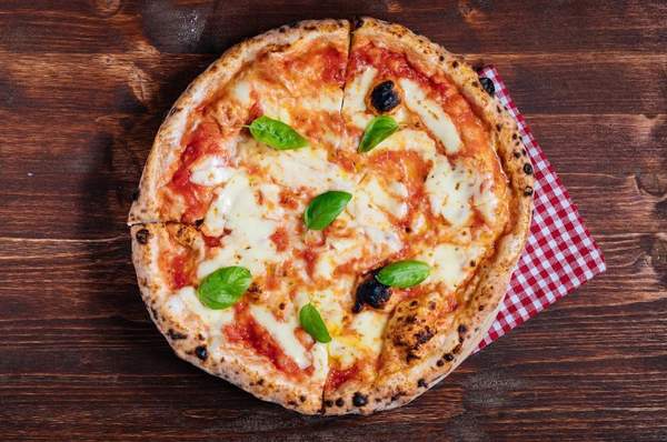 Pomodoro, mozzarella, zola, parmigiano, fontina