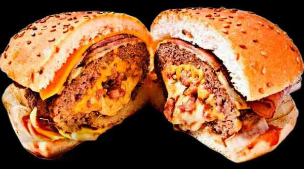 4 strati di pane,3 strati di carne,cgili cheese nuggets,cipolla,cheddar cheese e salsa bbq. Servito con patatine e bevanda.