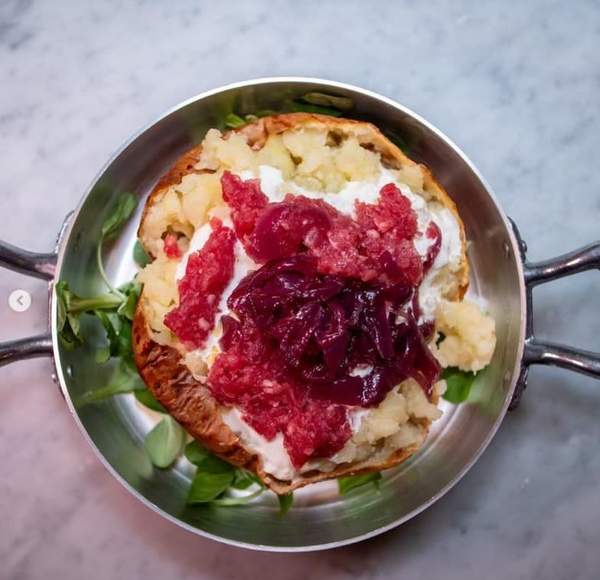 Stracciata di burrata, salsiccia di bra e radicchio caramellato