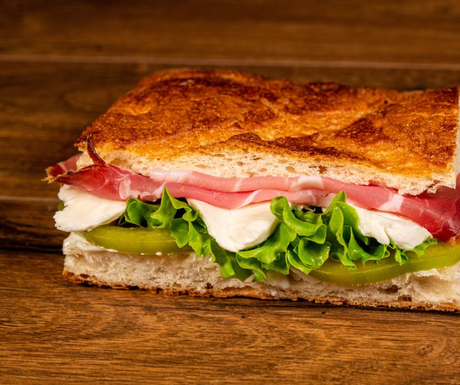 Schiacciata con: mortadella con pistacchio, stracchino, olio di oliva