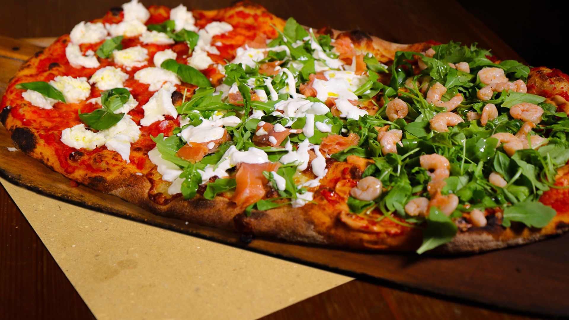 Pomodoro, fior di latte, funghi, olive, prosciutto cotto, uova, carciofi