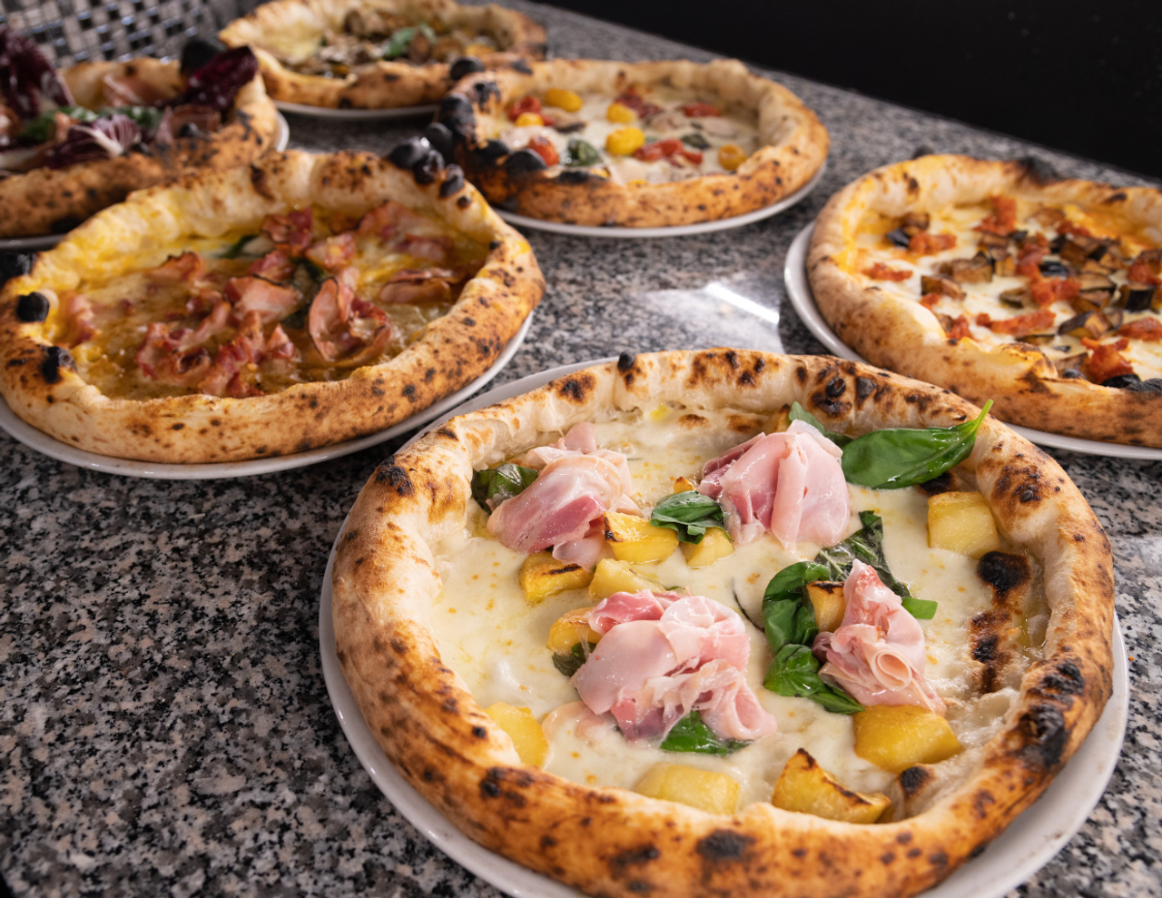 3 PZ MORTADELLA E ROSAMARINA, POMODORINI E MOZZARELLA, ‘NDUJA E SCAGLIE DI GRANA