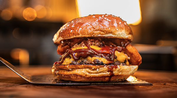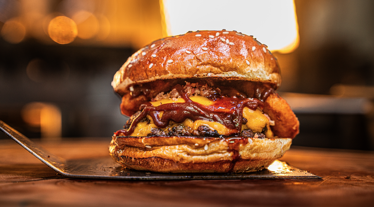 Doppio Hamburger di Scottona 180g, doppio Cheddar, Doppio Bacon, Iceberg, Salsa Smokey
