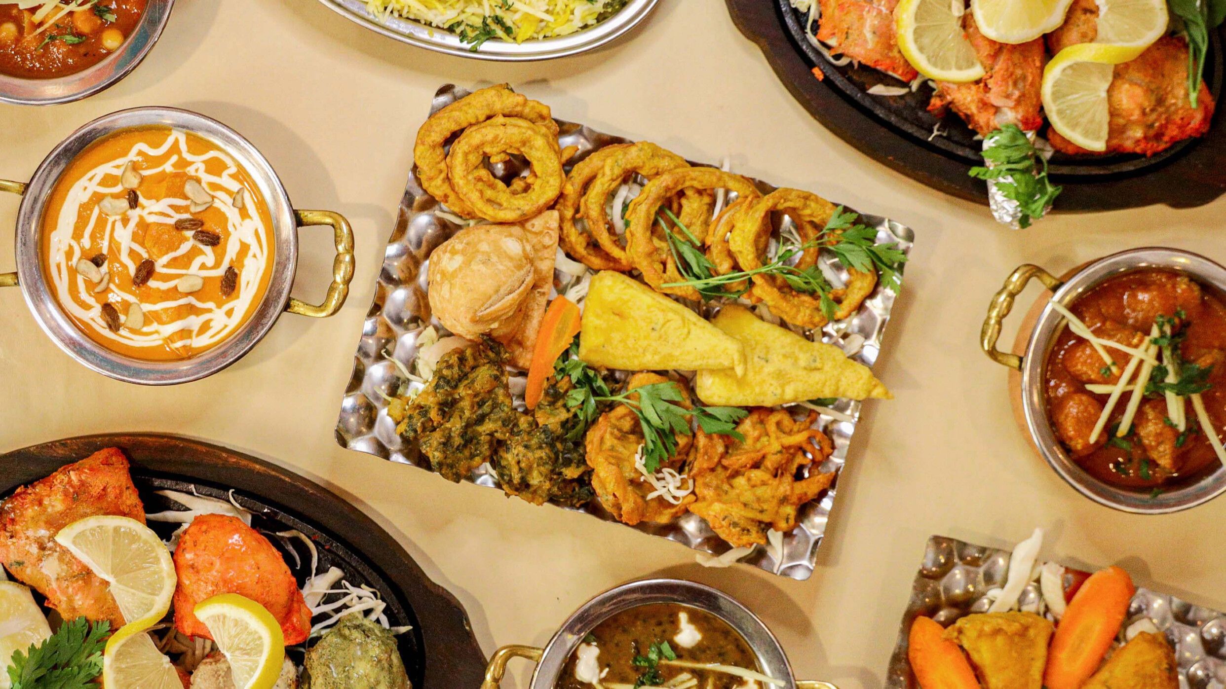 Assortimento di antipasti di verdure calde - veg samosa, veg pakora, paneer pakora,..