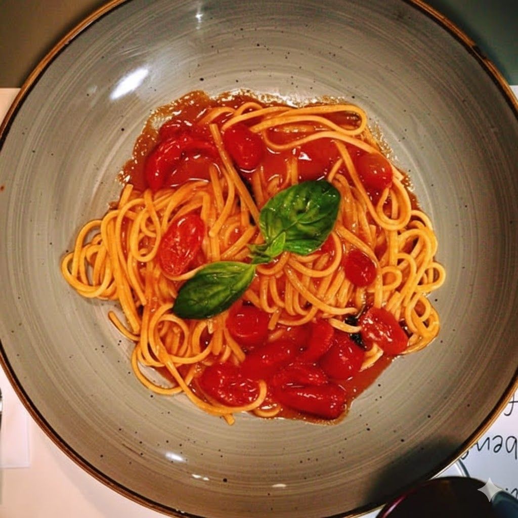 Linguine, pomodori datterini e basilico