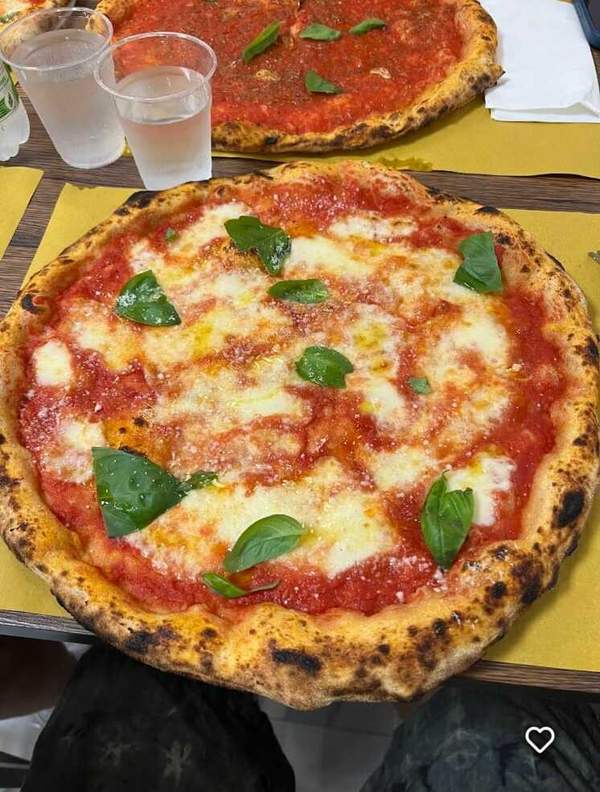 Pomodoro San Marzano, salame piccante, mozzarella fior di latte di Agerola, basilico, olio EVO e Parmigiano Reggiano