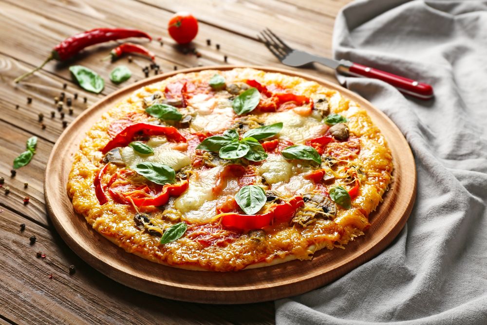 Salsa mutti, fior di latte, funghi freschi, carcioifini, melanzane zucchine peperoni freschi grigliati