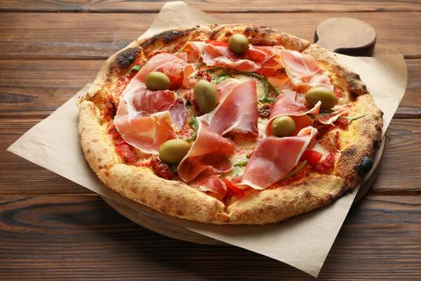 Mozzarella, salsa di pomodoro e spesso prosciutto cotto o funghi, il tutto racchiuso in un impasto per pizza piegato