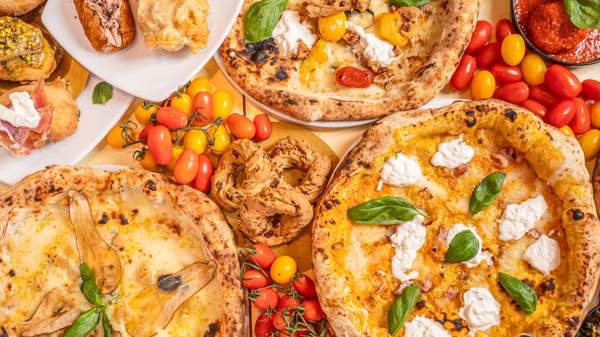 Pomodoro e grana, mortadella e pistacchio, crudo e stracciatella