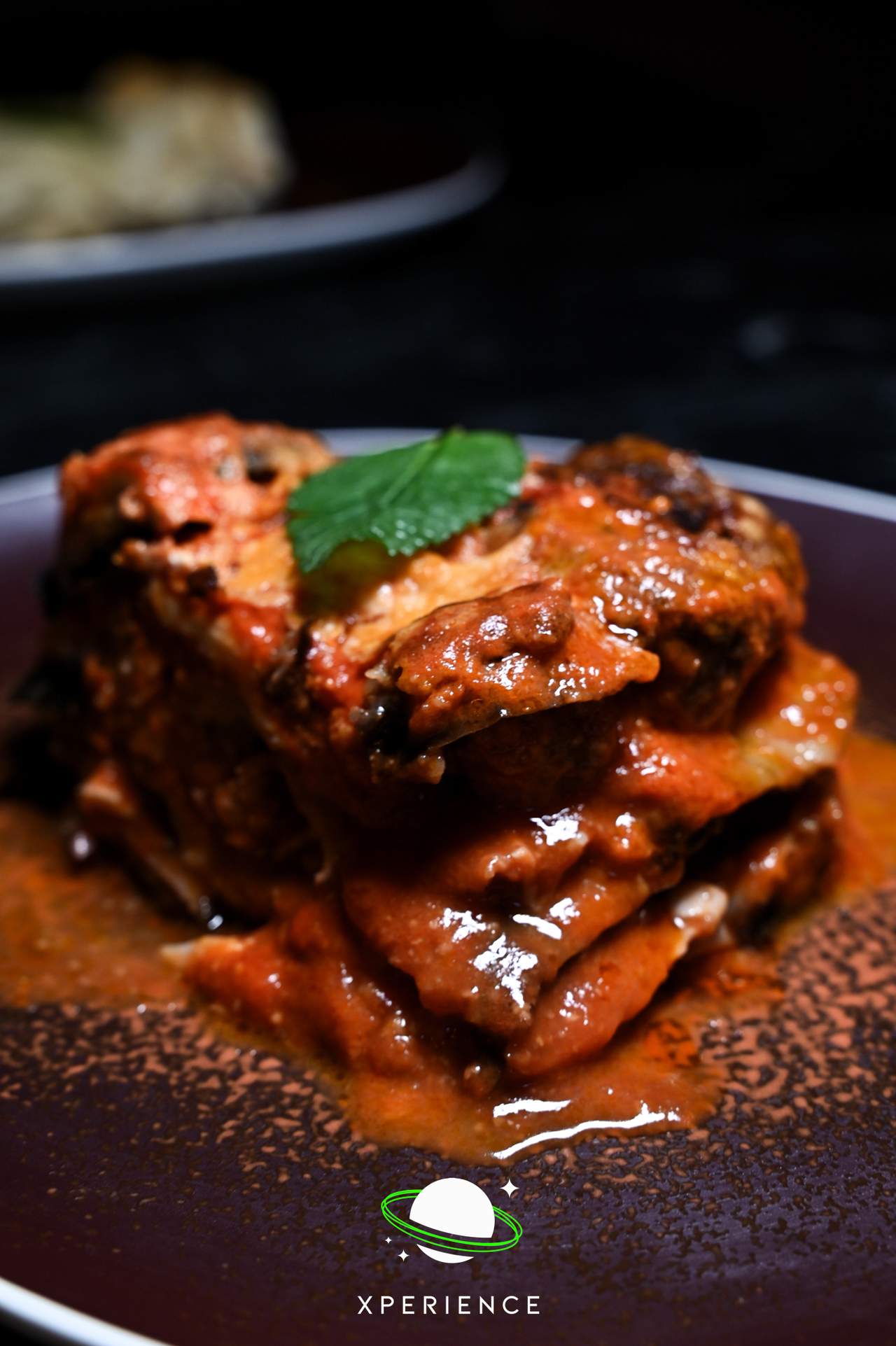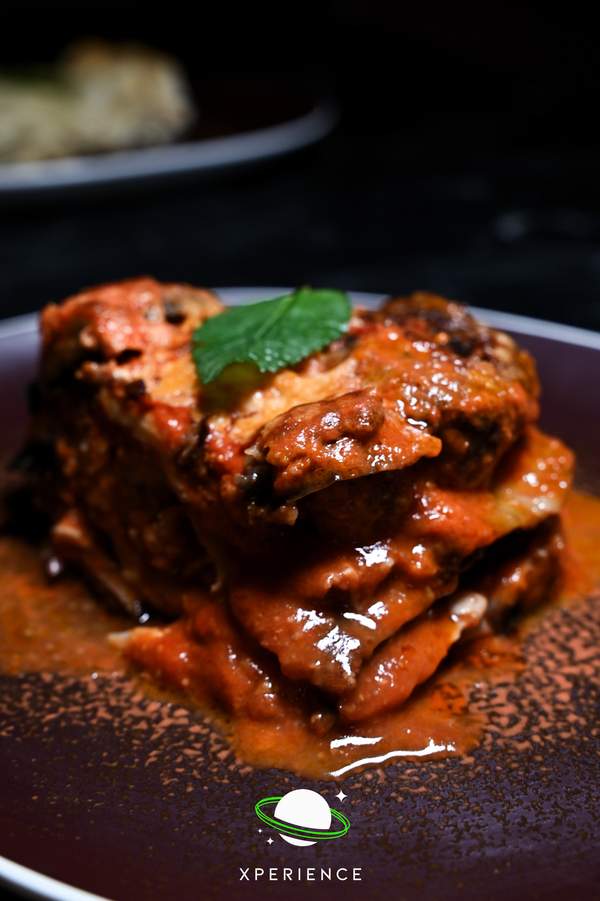 La classica parmigiana con prodotti di qualità sugo bio, mozzarella di bufala, prosciutto cotto Praga e polpettine di carne mista