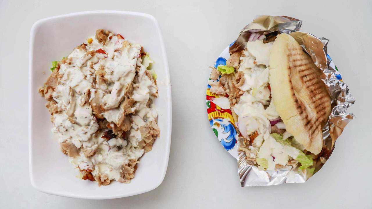 Kebab, pomodoro, cipolla, salsa allo yogurt, lattuga