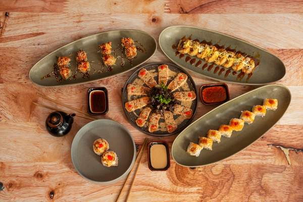 6 Hosomaki, 16 uramaki, 6 sashimi, 2 temaki, 2 gunkan e 8 nigiri