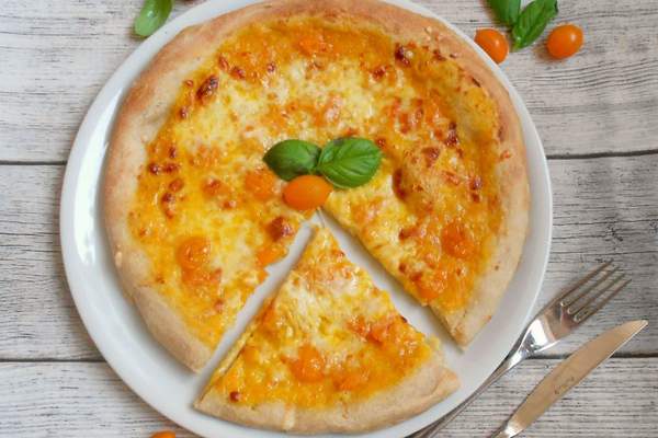 pomodoro san marzano, fior di latte, provola, zola, scaglie di grana