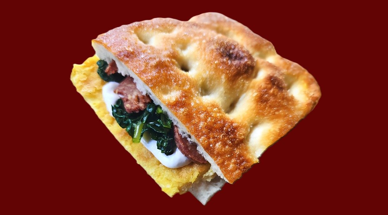 Farinata di ceci, stracchetto affumicato, salamino piccante veg, friarielli