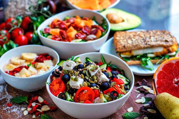 olive, mela, scaglie di grana, avocado, pomodori, rucola, insalata, pane integrale (opzionale)