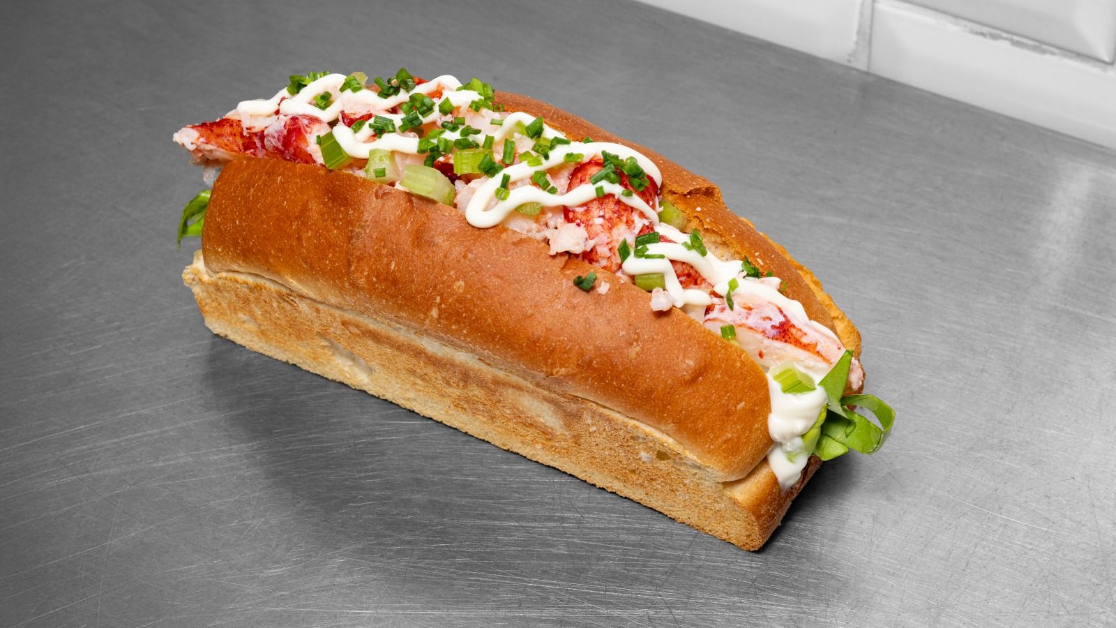 Pan Brioche con Astice al vapore, lattuga, sedano, erba cipollina, maionese al lime