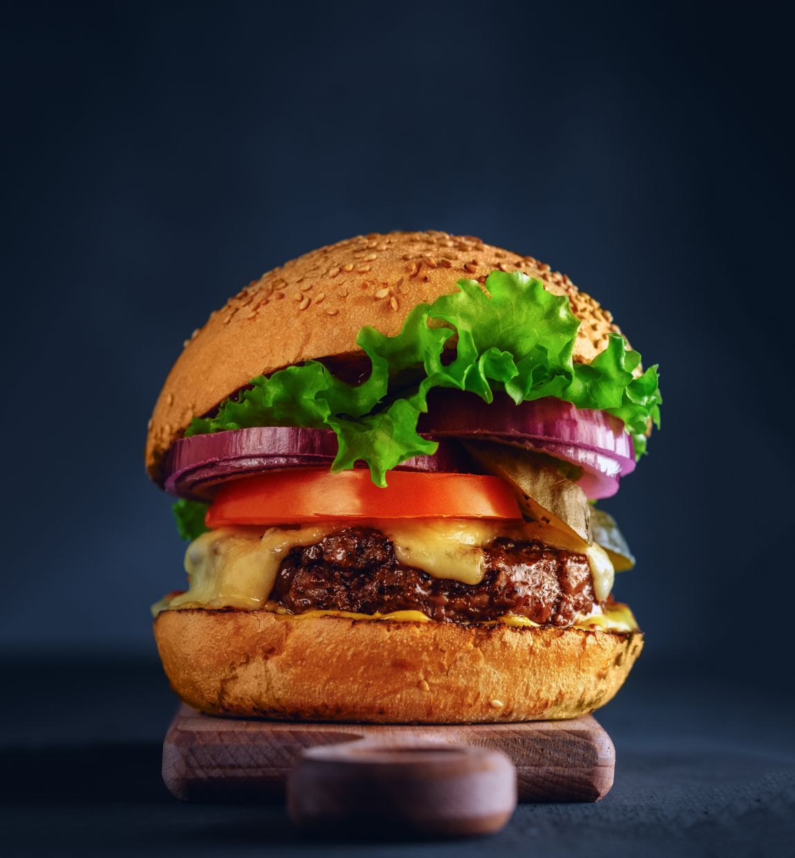 Formaggio, cipolla croccante, pomodoro, insalata e maionese.